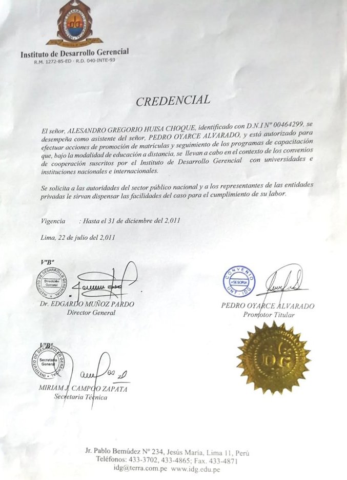 Por fin hemos terminado de confeccionar las credenciales para el colaborador que quedaba por mencionar. Enhorabuena Alesandro (https://www.facebook.com/yeremy.lopezmamani)