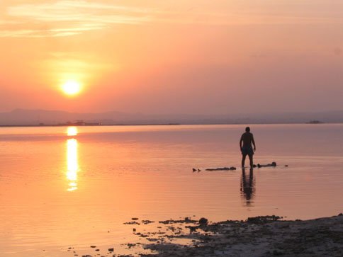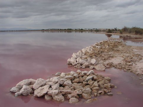 Una laguna muy especial resulta ser esta de Torrevieja a la que se denomina la "Laguna Rosada". El color de sus aguas es cambiante, dependiendo del la incidencia del sol y el calor que intervienen en la reacción de estas sales triásicas tan especiales contenidas en la laguna, con el lecho arcilloso. Si todos conocemos ya de las benévolas propiedades terapéuticas de la arcilla y del agua del mar, ahora también se confabula en una sinergia con las sales minerales de la era terciaria (cuando se gestó la vida en la Tierra), que son arrastradas por un salmueolucto desde las minas triásica de sal en Cabezo de Pinoso que se encuentran a 25 Kilómetros y se construyó hace 30 años, todo ello estimula una bacteria especial que proporciona estos cambios en los colores.