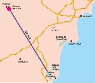 ¿Cómo llegar a las minas de sal?La ruta de acceso más rápida al Cabezo de la Sal es desde La Algueña. Salimos por la CV-840 en dirección Pinoso. En la primera rotonda (El Rodriguillo) tomamos la salida al caserío de El Faldar. Una vez llegados a El Faldar encontraremos dos intersecciones. La primera, hacia la derecha, nos dirigirá al Cerro de la Sal. Continuando el ascenso al Cerro de la Sal nos incorporamos a un camino asfaltado, que debemos continuar, tomando en la siguiente bifurcación (1 km) el desvío a la izquierda. Este camino nos conducirá a las instalaciones del salmueroducto en lo alto del cerro. A partir de este punto debemos continuar por la pista de tierra que continúa el ascenso hasta el punto donde estacionamos el coche (explanada de perforación, próxima a las dolinas). El último tramo hasta la Cueva del Gigante deberemos hacerlo a pie. Durante poco menos de 1 km, descenderemos con fuerte pendiente hasta el desvío a la izquierda que nos lleva hasta la cueva. http://es.wikiloc.com/wikiloc/view.do?id=2807891