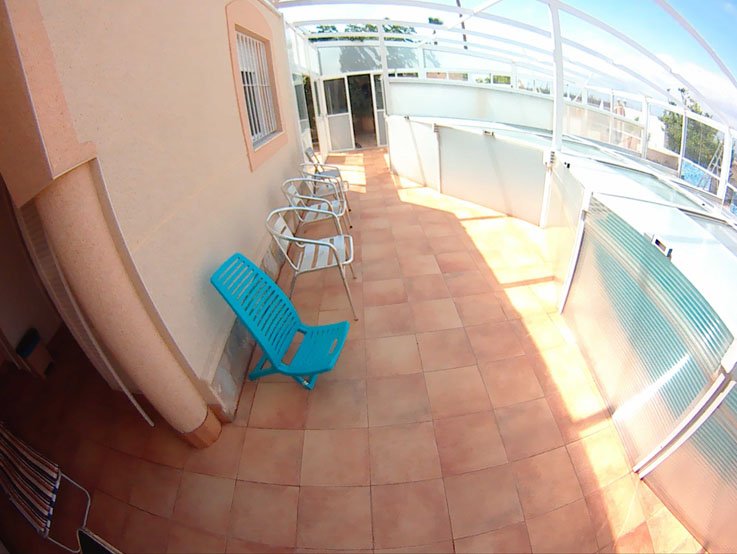 Amplios espacios solados para grupos grandes - Grandes zonas soladas alrededor de la piscina.