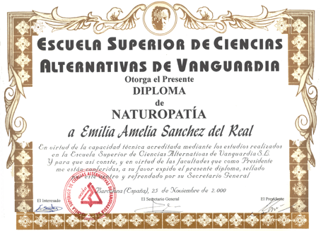 Dª. Emilia Amelia Sánchez del Real, Experta en Naturopatía y Associate Universitaria en Energo-Shiatsu.