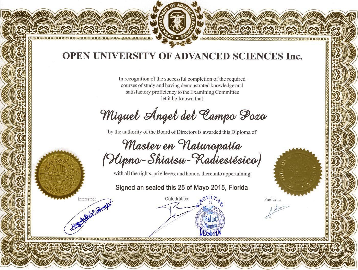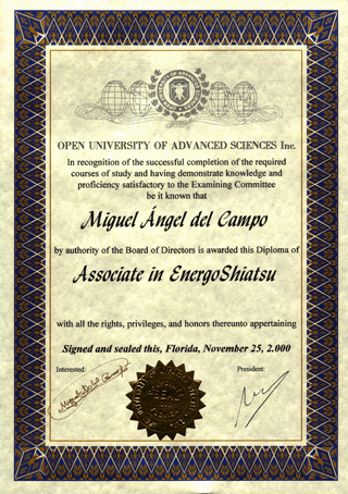 en Naturopatía especializado en Hipno-Shiatsu-Radiestésico. |