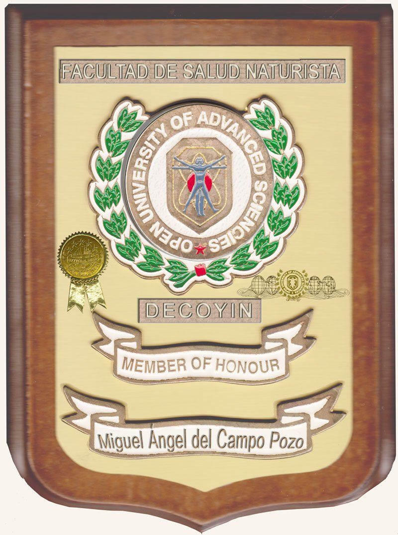 | Miembor de Honor de la Facultad de Salud Naturista DECOYÍN, de la OUAS. |