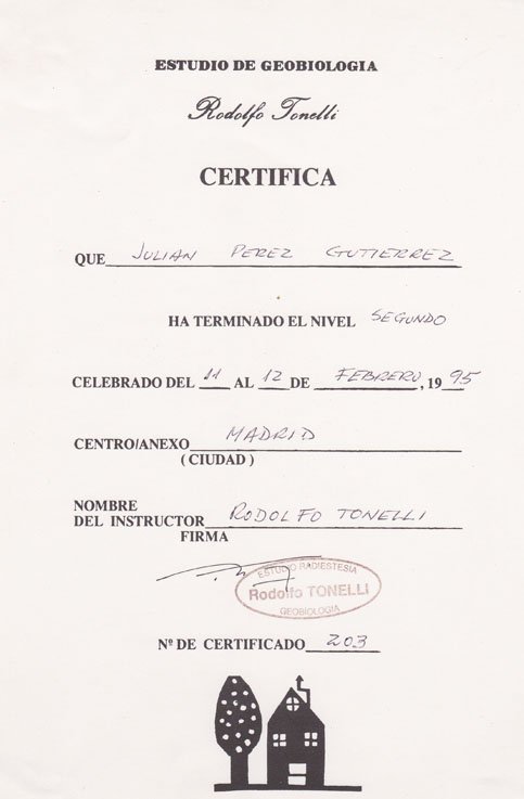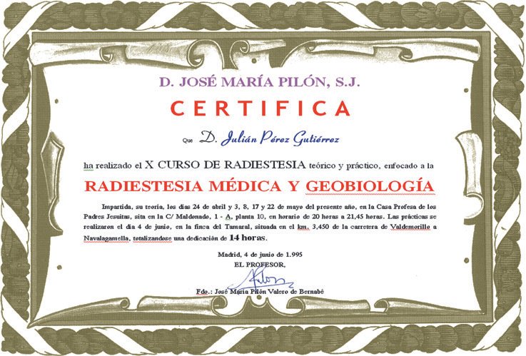 que culminara con especializaciones enfocadas más directamente aún en esta obra, como el Doctorado en Psicología Sofrónica Radiestésica en 1998, |