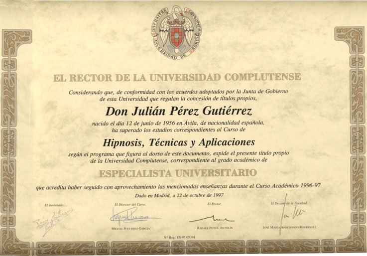 Y como continuación a este doctorado continuo con mis estudios en temas más propios de la psicología, realizando en 1997 un master en la Universidad Complutense de Madrid, |