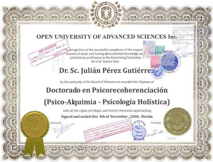 Y el Doctorado en Psicorecoherenciación (PsicoAlquimia) Psicología holística. |