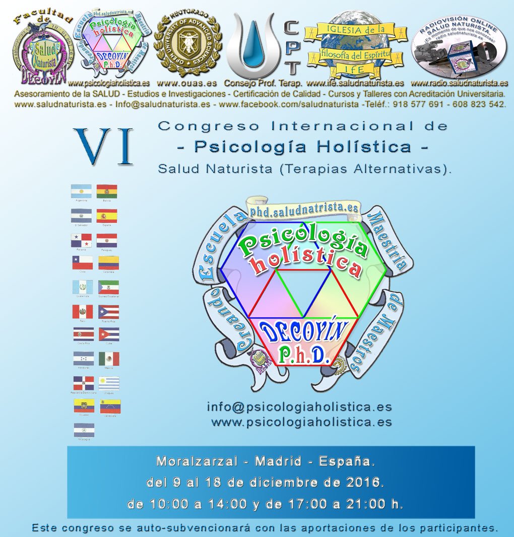 Estamos ya preparando el VII Congreso Internacional de Psicología Holística para que tú también puedas participar. |