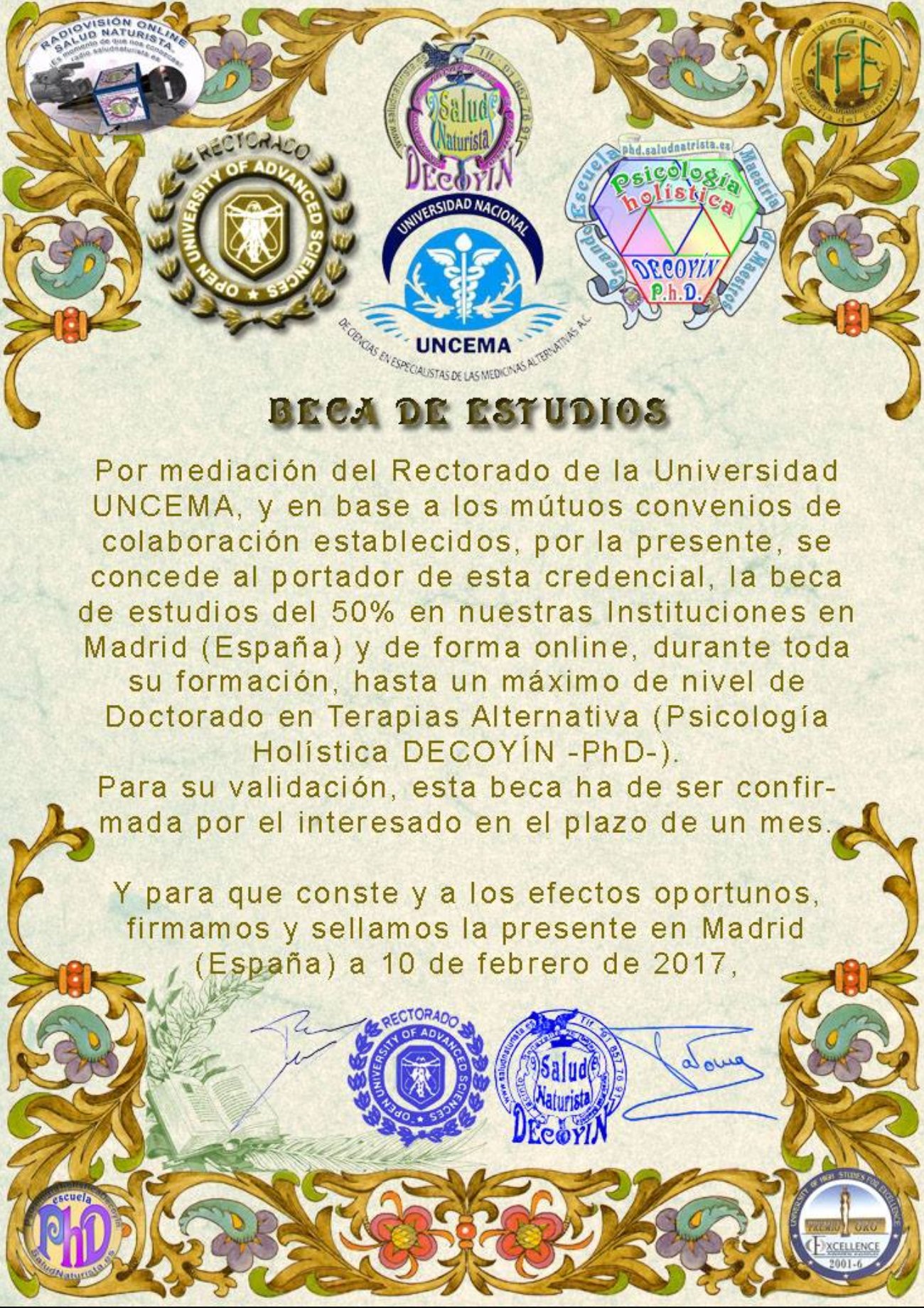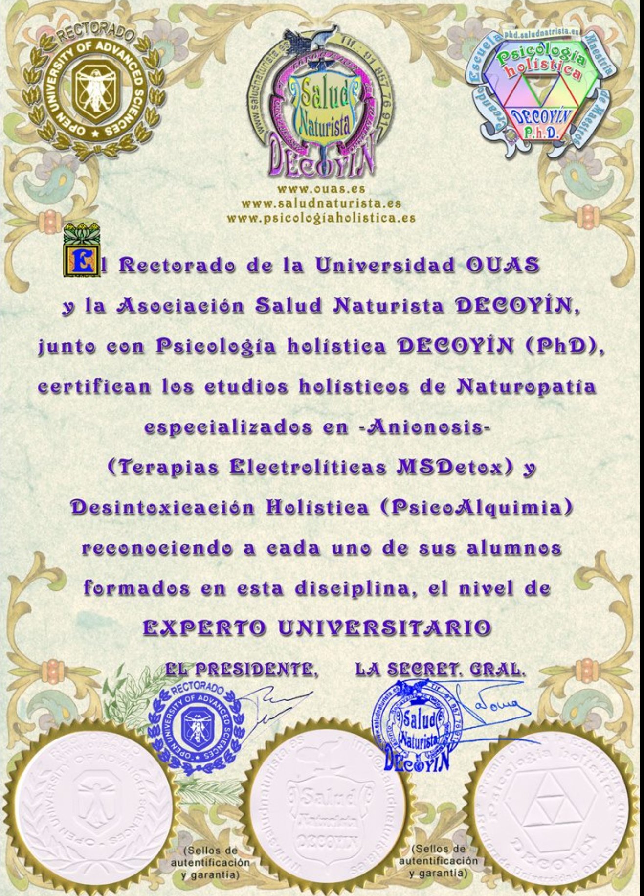Doctorado en Psicología holística DECOYÍN (PhD).