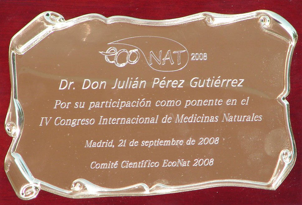 | Ponencia realizada en el Palacio de Congresos de Madrid, organizado por el Salón Internacional de Salud, Nutrición y Terapias Naturales (ECO-NAT), en su IV Congreso Internacional de Medicinas Naturales, los días 19 a 21 de septiembre de 2008. Celebrado en le Palacio de Congresos de Madrid. Con mención especial (diploma). |