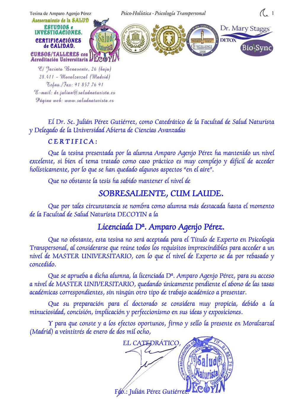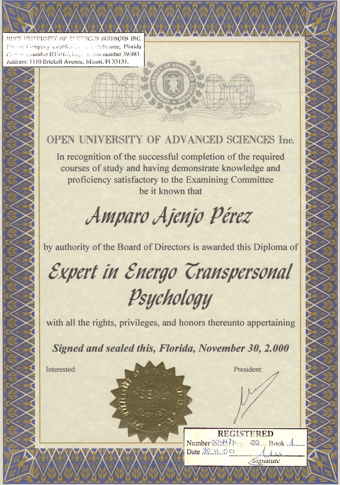 Dª. Amparo Ajenjo Pérez, Licenciada en Psicología por la Universidad Complutense de Madrid.
