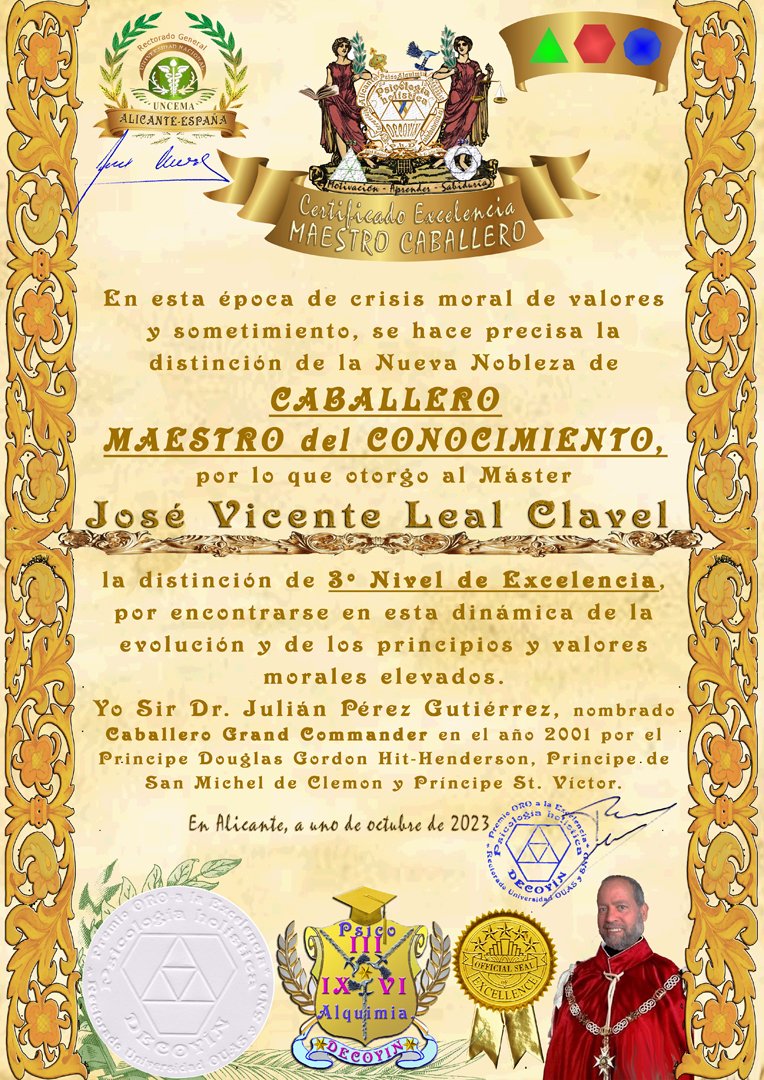 “distinción de lA EXCELENCIA de los MAESTROS CABALLEROS DE LA SABIDURÍA”