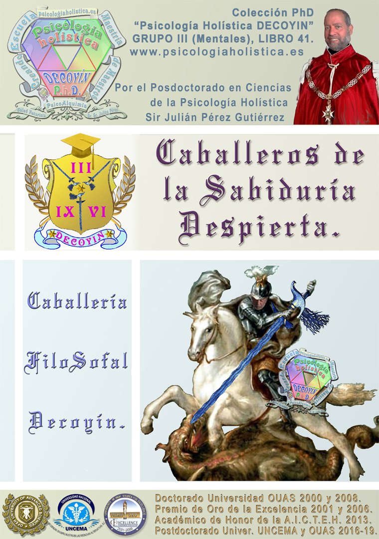 El libro 41- Caballeros de la Sabiduría Despierta, de la Colección de PsicoAlquimia de la Psicología Holística Decoyín, con sus 50 vídeos, conformarán la formación para el próximo curso 2023-24, que puede servir de materia tanto para ascender los ya acreditados, como para iniciarse los que pretenden alcanzar de estos reconocimientos.