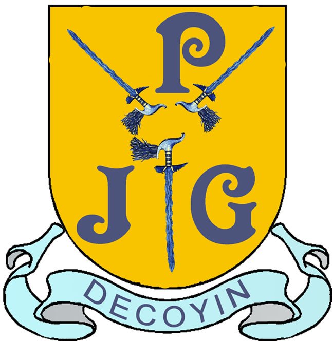El Registro Internacional de Armas Gentilicias requiere de personalización, impidiendo que figure un nombre abstracto como el de Salud Naturista DECOYIN, por lo que fue preciso dotar de mis iniciales Julián Pérez Gutiérrez (JPG) a este escudo, como fundador y presidente de esta Asociación.
