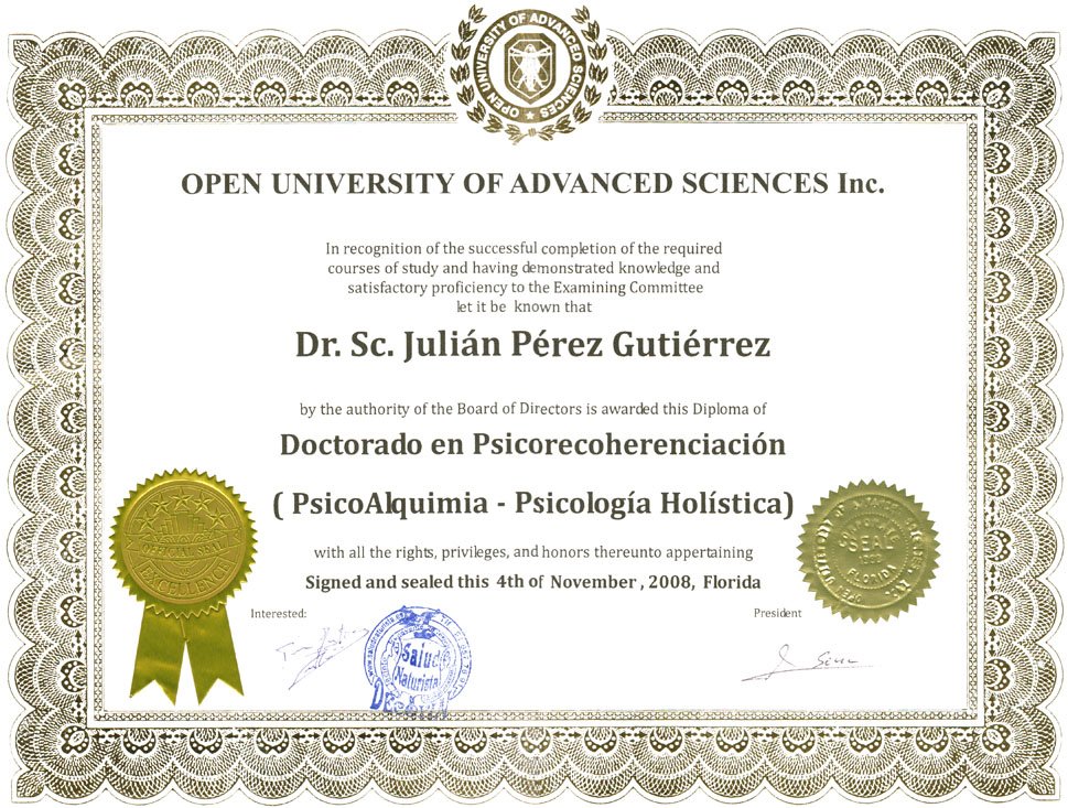 Y toda esta información recopilada en 22 libros, con acreditación académica doctoral, dieron lugar a la Cátedra de Salud Naturista que posteriormente se transformara en el Decanato y en la actualidad el Rectorado de la Universidad OUAS en el área de Salud Naturista. |