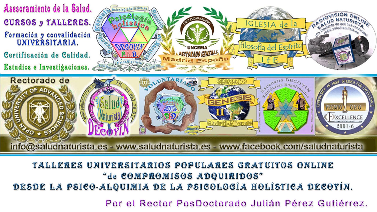 TALLERES UNIVERSITARIOS POPULARES gratuitos online “de COMPROMISOS ADQUIRIDOS” DESDE la PSICO-ALQUIMIA de la PSICOLOGÍA HOLÍSTICA DECOYÍN. |
