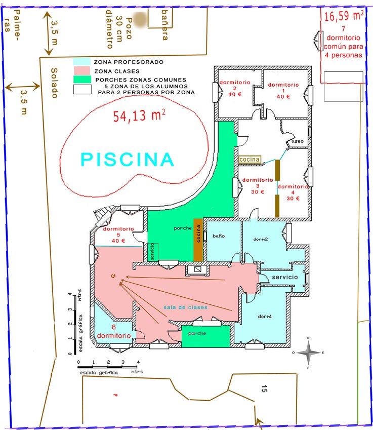 Siempre buscamos la forma más económica para el alumno, el cual solo tendrá que colaborar con los gastos que genere. Los precios son orientativo, siempre que el responsable del producto o servicio nos mantengan los descuentos. Toda la parte comercial no es de nuestra competencia y se deberá tratar con el responsable que corresponda. Toda esta información es un proyecto que dependerá del interés que, tú como colaborador muestres, para llevar a efectos nuestras iniciativas. Esperamos tu opinión para debatir el tema de precios, actividades, etc. a ofrecer cuando el proyecto se lleve a efecto. Por cuestiones de salud no está permitido traer animales, fumar en todo el recinto del Centro, ni consumo de drogas, alcohol, etc. |
